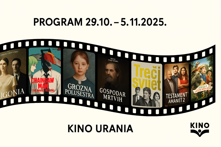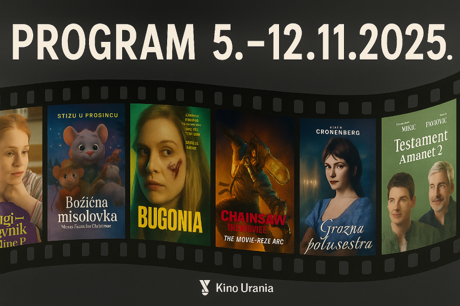 14:00 Senzorna projekcija: Šape u akciji- Pets on a Train (99 min) 16:45 Gabina kuća lutaka: Gaby's Dollhouse: The Movie SINK (98 min) PREMIJERA 17:00 Kino klub: Kontinental '25 (109 min) 19:00 Kino klub: CoolTour Mađarska: Ispit- A Vizsga (90 min) 20:00 predstava Ženski razgovori- RASPRODANO 20:40 Kino klub: Testament- Amanet 2 (108 min) PREMIJERA