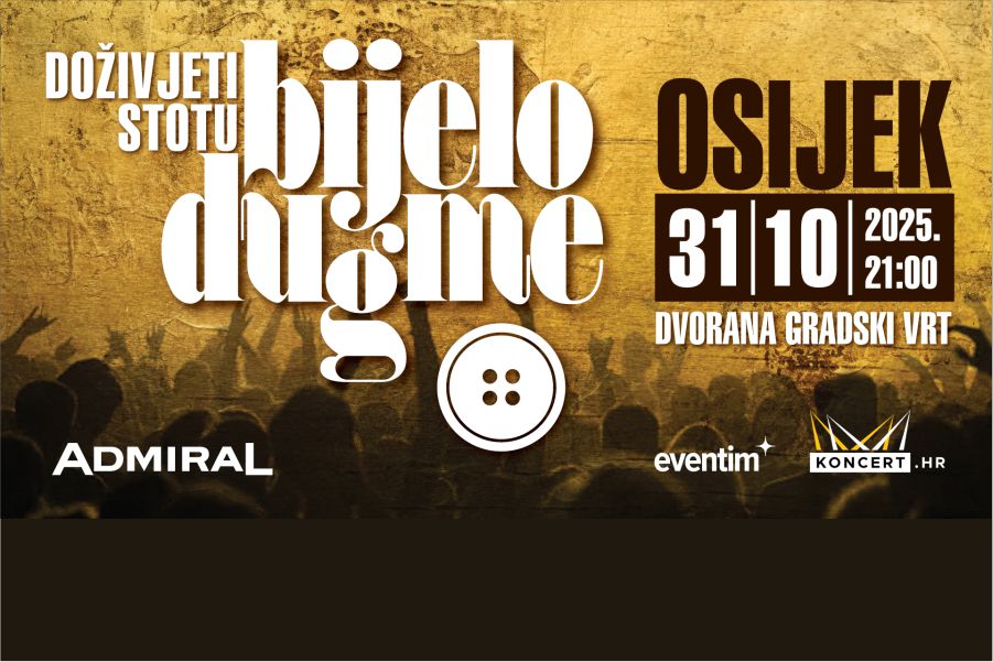 Koncert Agencija vam predstavlja, legendarno Bijelo dugme u Osijeku! Zvuk koji je obilježio generacije stiže u Dvoranu Gradski vrt – 31.10. u 21:00h. Koncert je dio velike turneje “Doživjeti stotu”, kojom Dugme slavi 50 godina postojanja. Ovo nije samo koncert – već susret generacija i emocija. Jer Bijelo dugme je više od glazbe – to […]