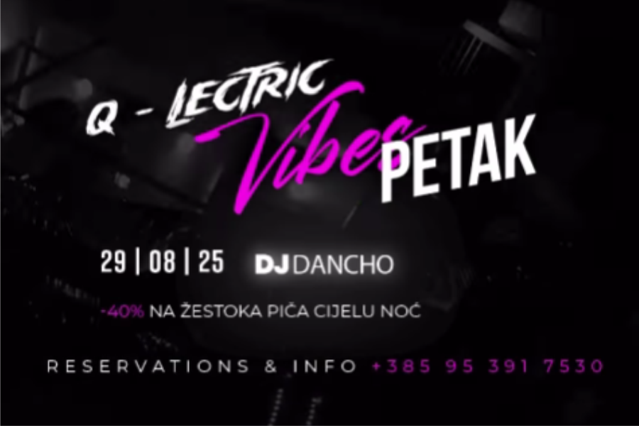 Pripremi se za nezaboravan izlazak! 40% popusta na žestoka pića cijelu noć. Rezerviraj svoj stol na vrijeme pozivom na +385 95 3917 530. Sve informacije o noćnom klubu Q Club potražite ovdje. Medijski pokrovitelj: Osijek.in |