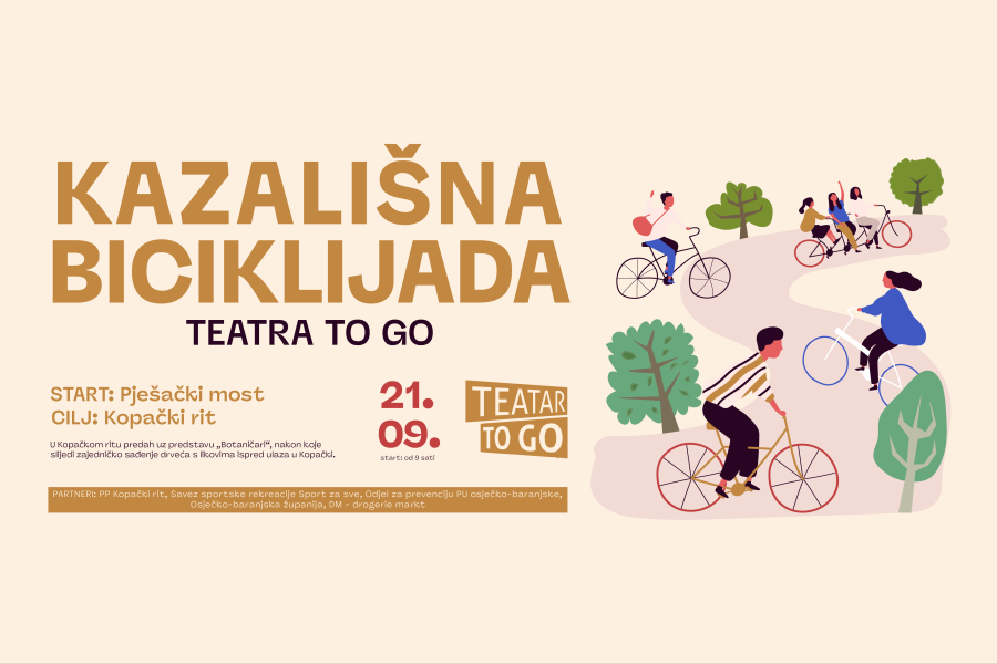 Kazališna biciklijada održat će se 21. rujna 2025., na Međunarodni dan sadnje drveća i dan uoči Europskog dana bez automobila (22.09.). Teatar To Go najavljuje Kazališnu biciklijadu na relaciji od Osijeka do Kopačkog rita, 21. rujna 2025. Na ciljanoj lokaciji igrat će se predstava za djecu “Botaničari”, nakon čega slijedi sadnja drveća u Kopačkom ritu. […]
