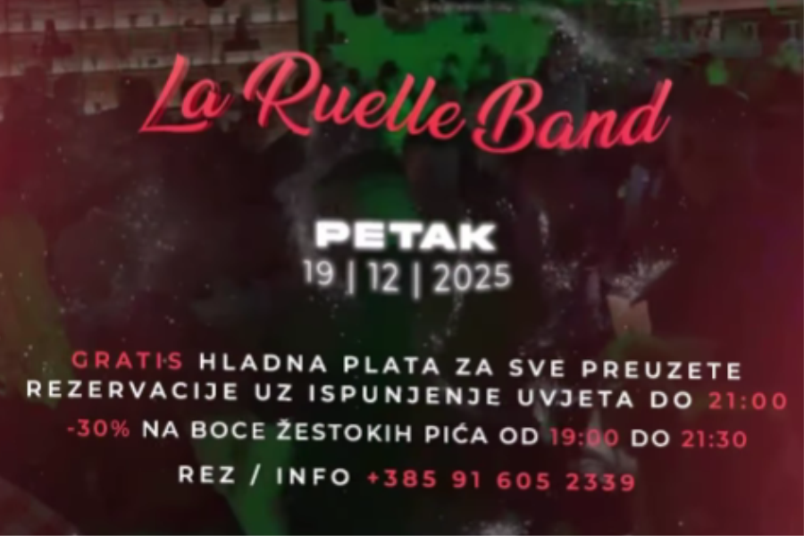 30% popusta na boce žestokih pića od 19:00 do 21:30. Za sve preuzete rezervacije uz ispunjenje uvjeta do 21:00 gratis hladna plata. Rezervirajte svoj stol pozivom na +385 91 605 […]